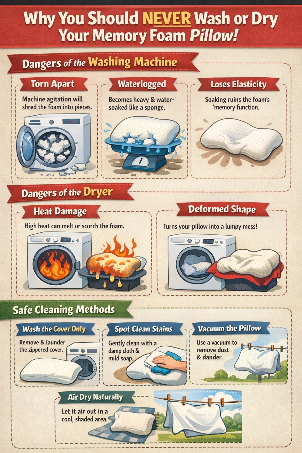 Bakit mapanganib ang dryer para sa memory foam pillow?