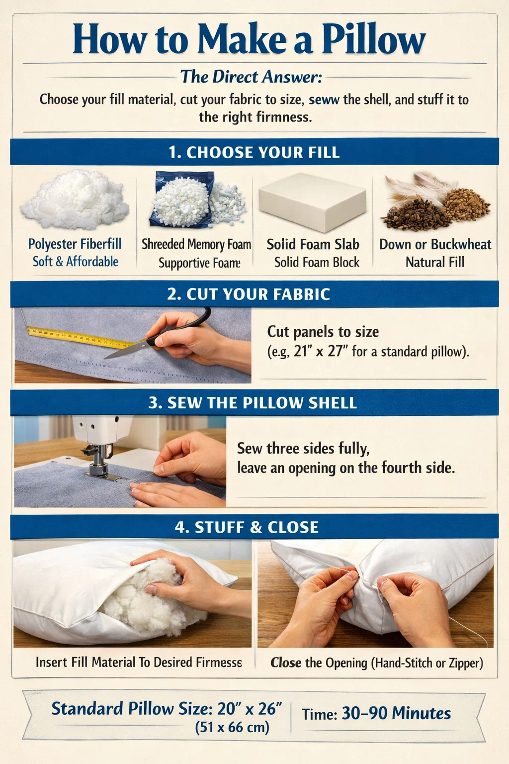 | Fiberfill Pillow | $4–$10 | 30–45 min | $8–$25 |