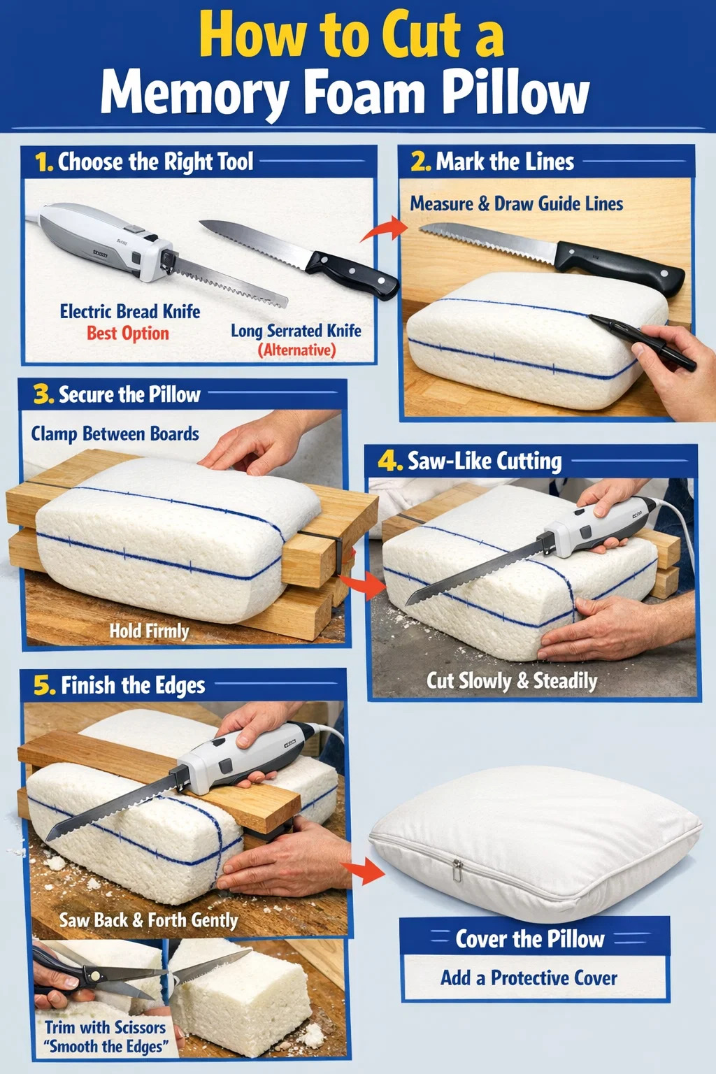 Mga partikular na hakbang para sa pagputol ng memory foam pillow: